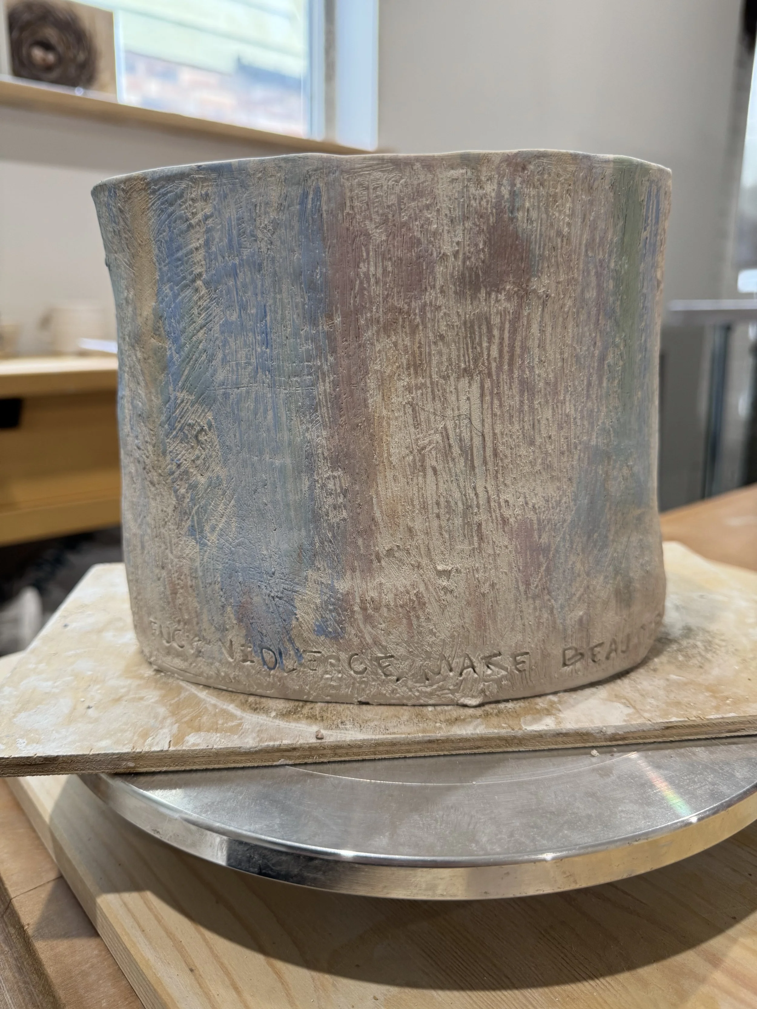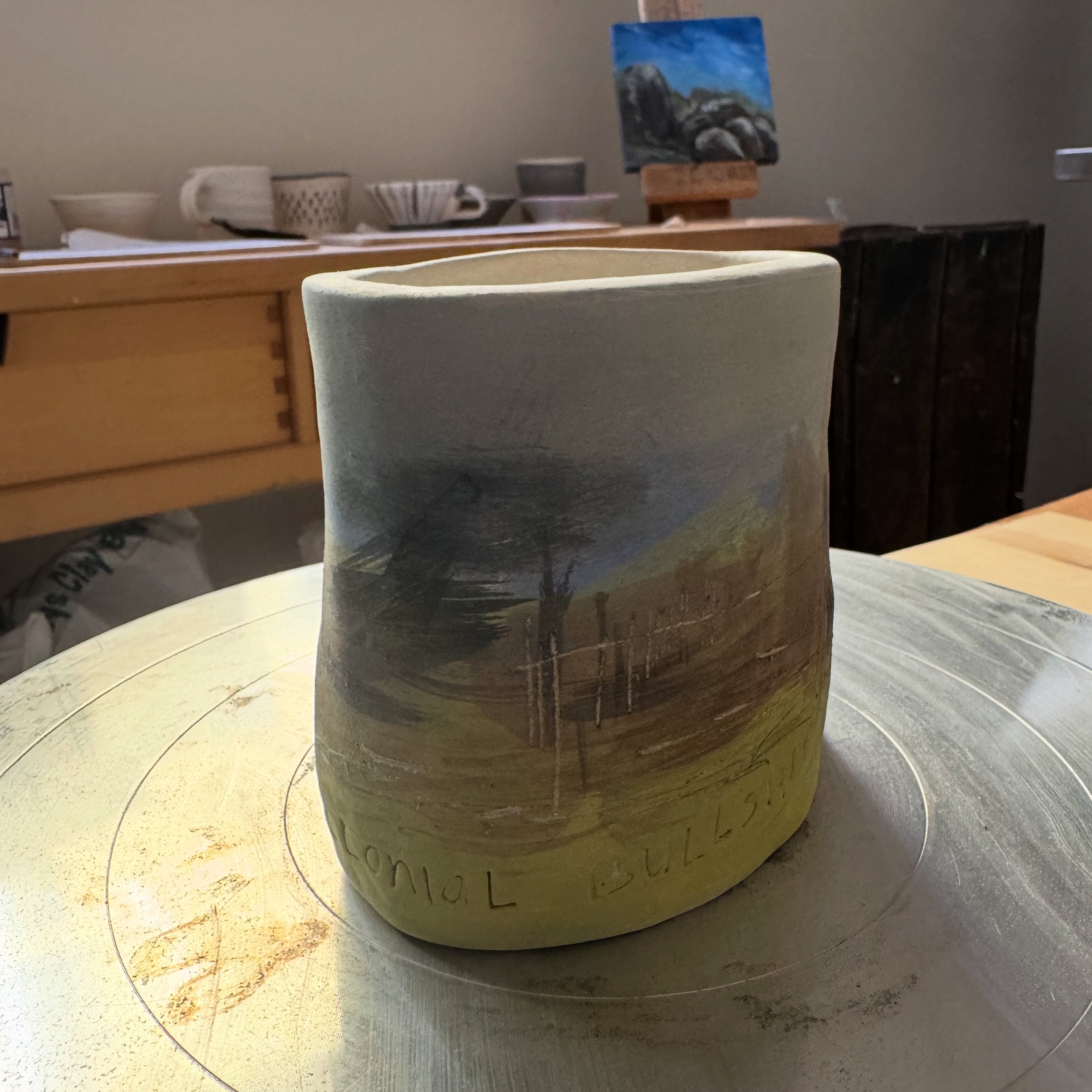 I’m experimenting with underglazes, I have some ideas I want to test out. And a direction to head for my vases and any larger vessels that have the right surface area. I’m considering some test tiles, as a cultural forms as a way to experiment without getting disappointed about buffering up pots 😂. These are the first forays. There are also two black slip experiments.